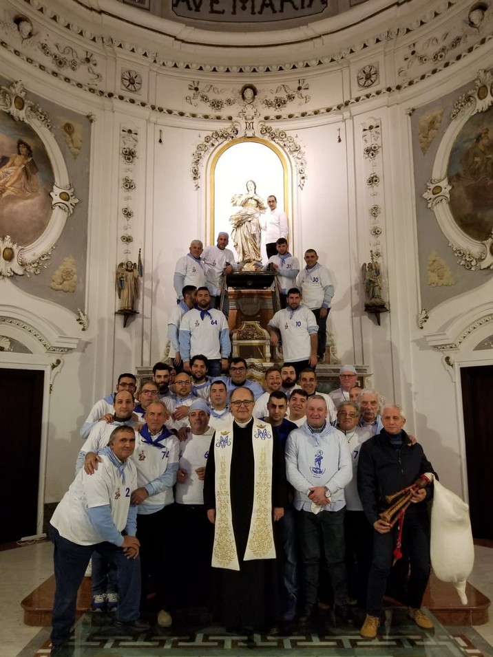 Il gruppo dei portatori nasce da una antica e salda tradizione, che risale agli ultimi decenni del 1800 e dal legame spirituale verso una vera e sana devozione all’Immacolata, nello spirito e nell’esigenza di accrescere e diffondere i valori della Fede. Questi princìpi animano il servizio di “Portatore” durante il cammino formativo di Fede e catechesi svolto per tutto l’anno e non solo nei giorni di preparazione alla solennità e della stessa processione. Infatti i membri sono tenuti nella formazione cristiana secondo un modello di vita di ispirazione cristiana e mariana. Infatti con un nuovo percorso, alla luce dalla volontà di dare equilibro, stabilità e responsabilità al Gruppo, all’interno della parrocchia, l’attuale parroco e rettore del santuario, e guida spirituale del gruppo, il Rev. Don Giovanni Basile, mensilmente riunisce il suddetto gruppo per la catechesi e approfondimento della Parola di Dio e sui temi propri di Mariologia, affinché si possa crescere tutti insieme con e verso Maria. Il Portatore così ha il dovere morale e cristiano di impegnarsi ad evangelizzare con la testimonianza della propria vita, i luoghi dove il “Portatore” vive ed opera quotidianamente, portando al prossimo, la Parola di Dio e diffondendo la devozione a Maria Santissima, operando la carità verso i fratelli anche attraverso iniziative personali o parrocchiali.